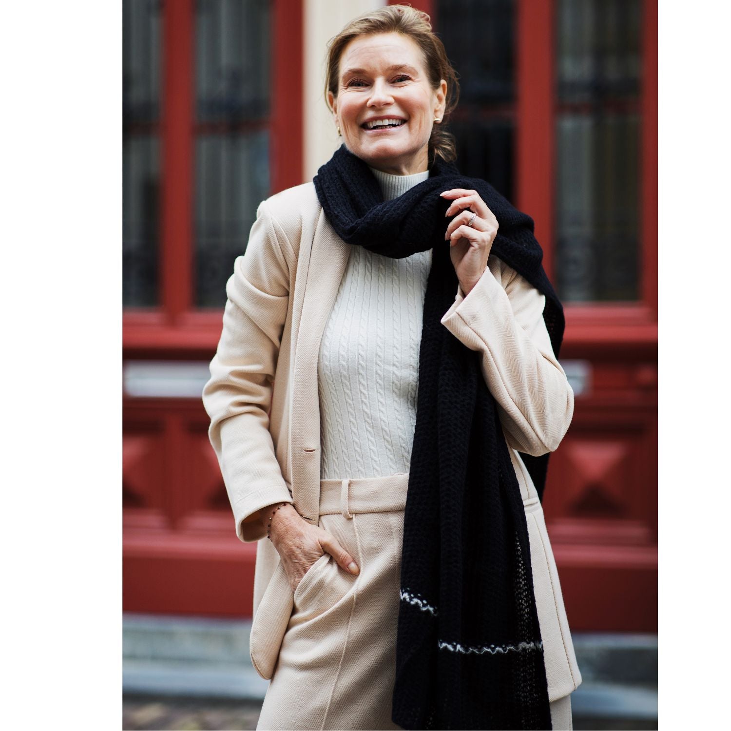 The scarf has a generous size and can also be used as a light blanket wrap.