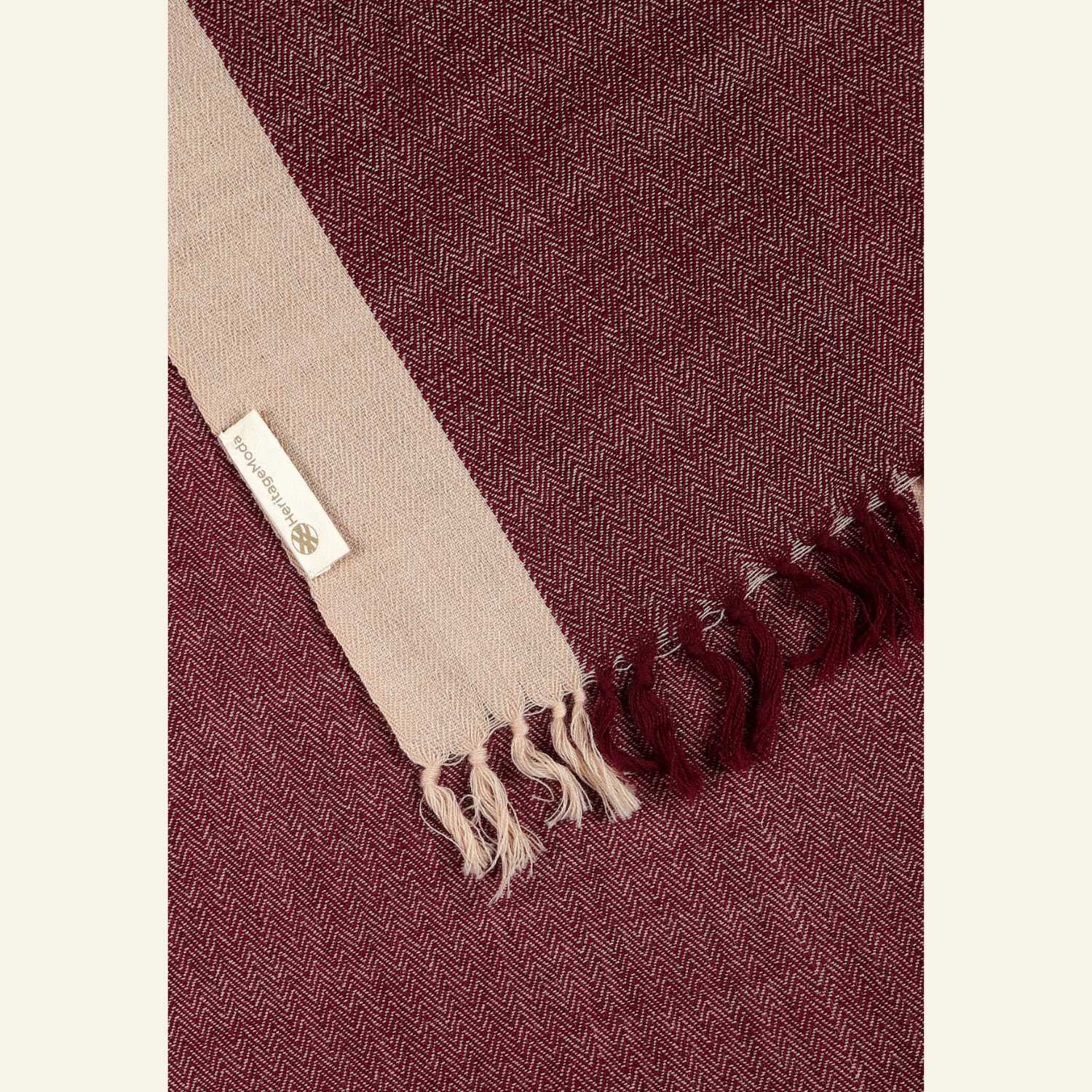 Delight someone special—or treat yourself—with this handwoven wool scarf, featuring a rich deep burgundy base in a classic herringbone weave and a subtle sand border . Handwoven by skilled artisans, each scarf embodies timeless elegance, artisanal craftsmanship, and enduring quality.